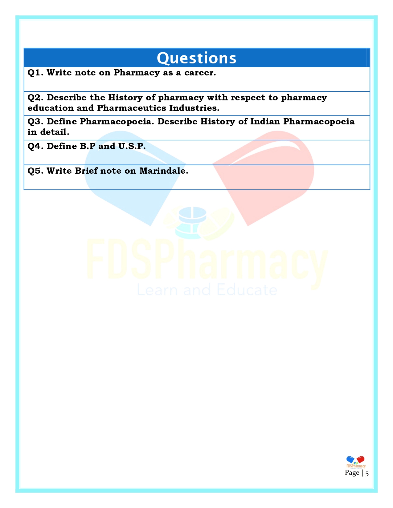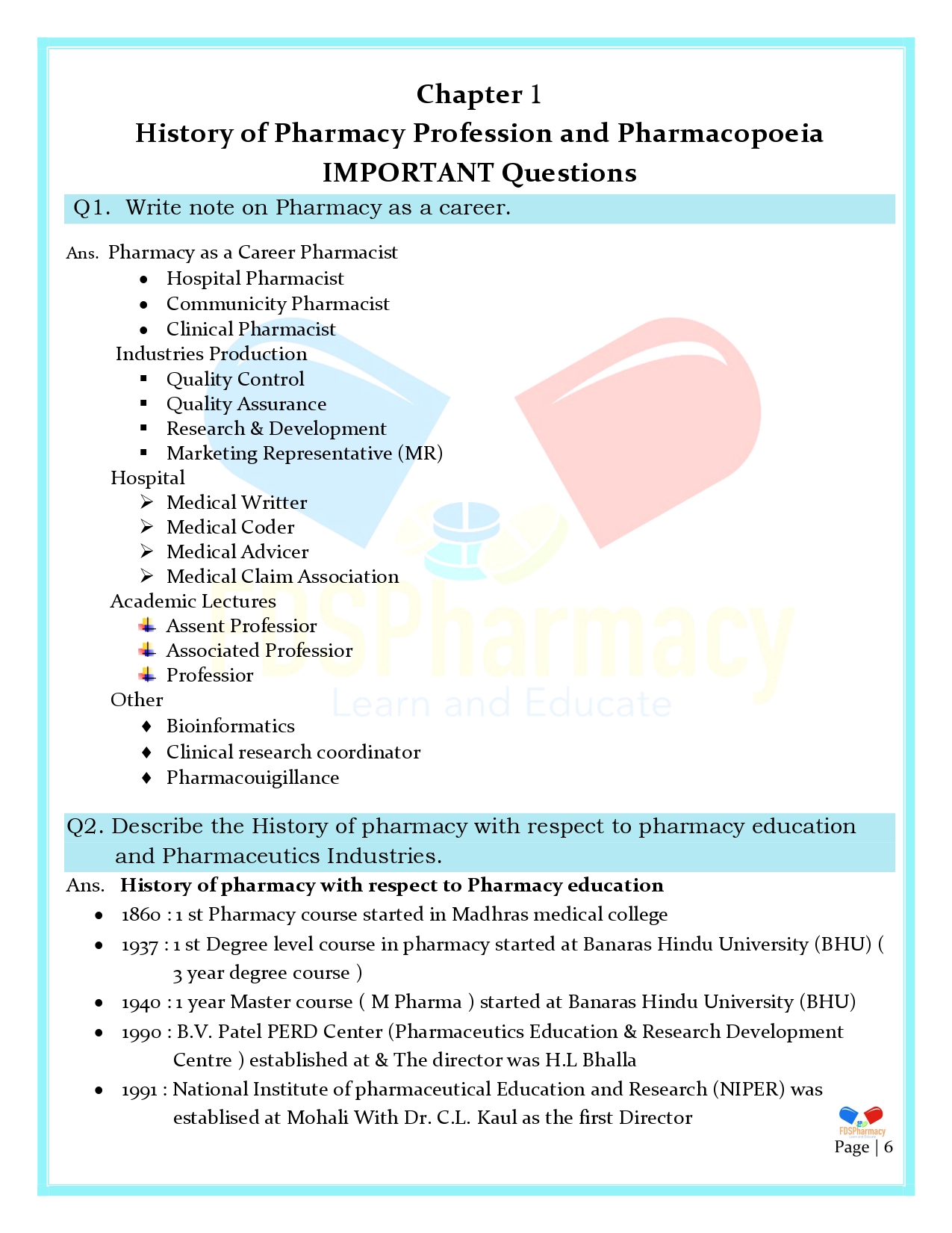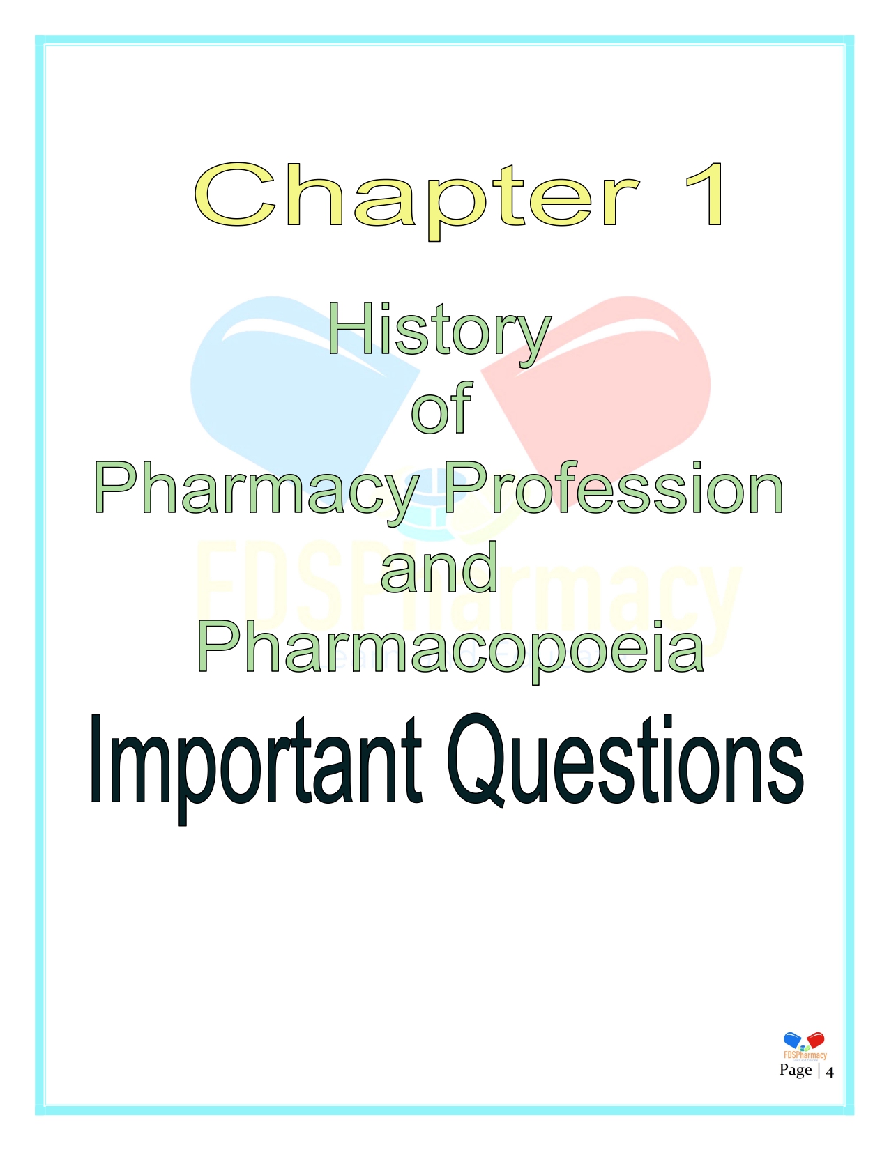 Chapter 1 : History of Pharmacy Profession and Pharmacopoeia