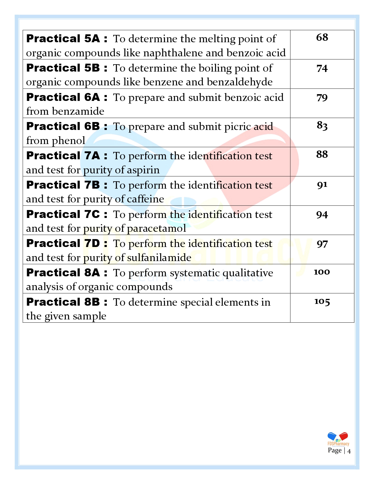 Practical 8A : To perform systematic qualitative analysis of organic compounds