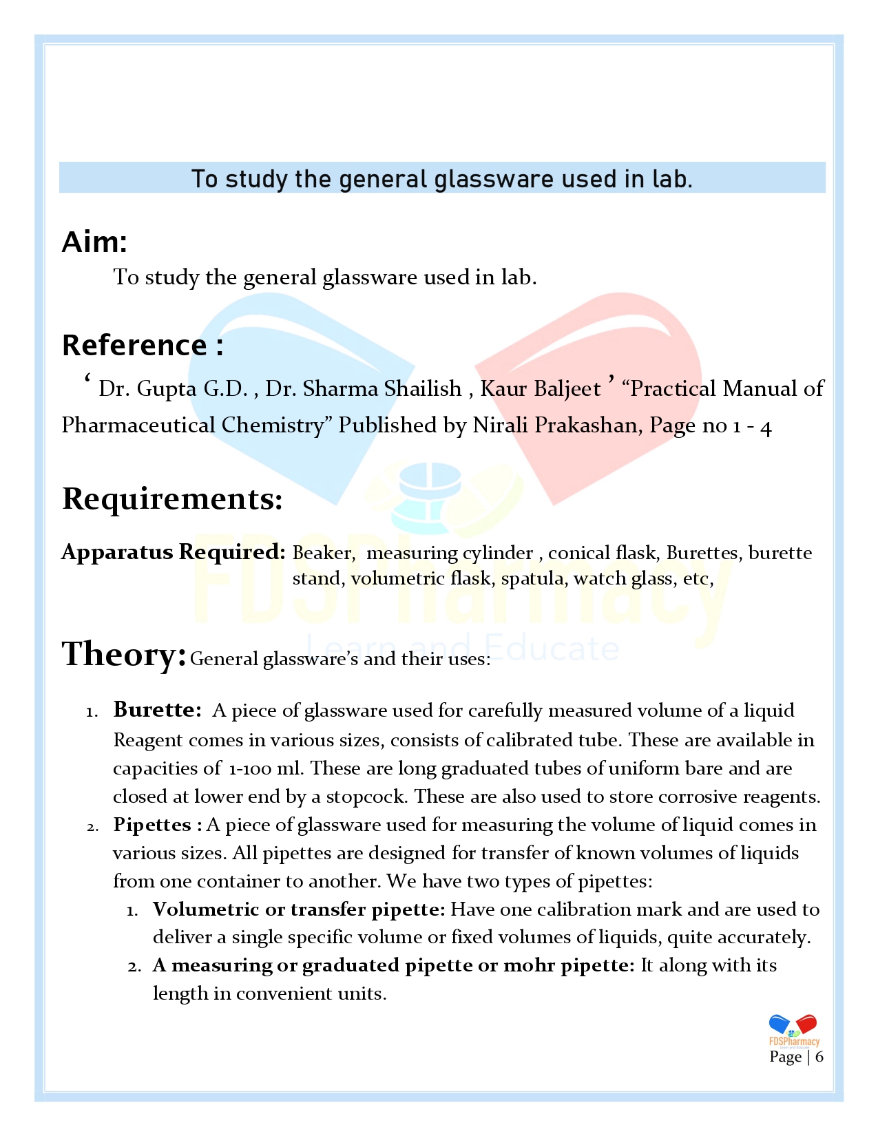 Practical 1 : To study the general glassware used in lab