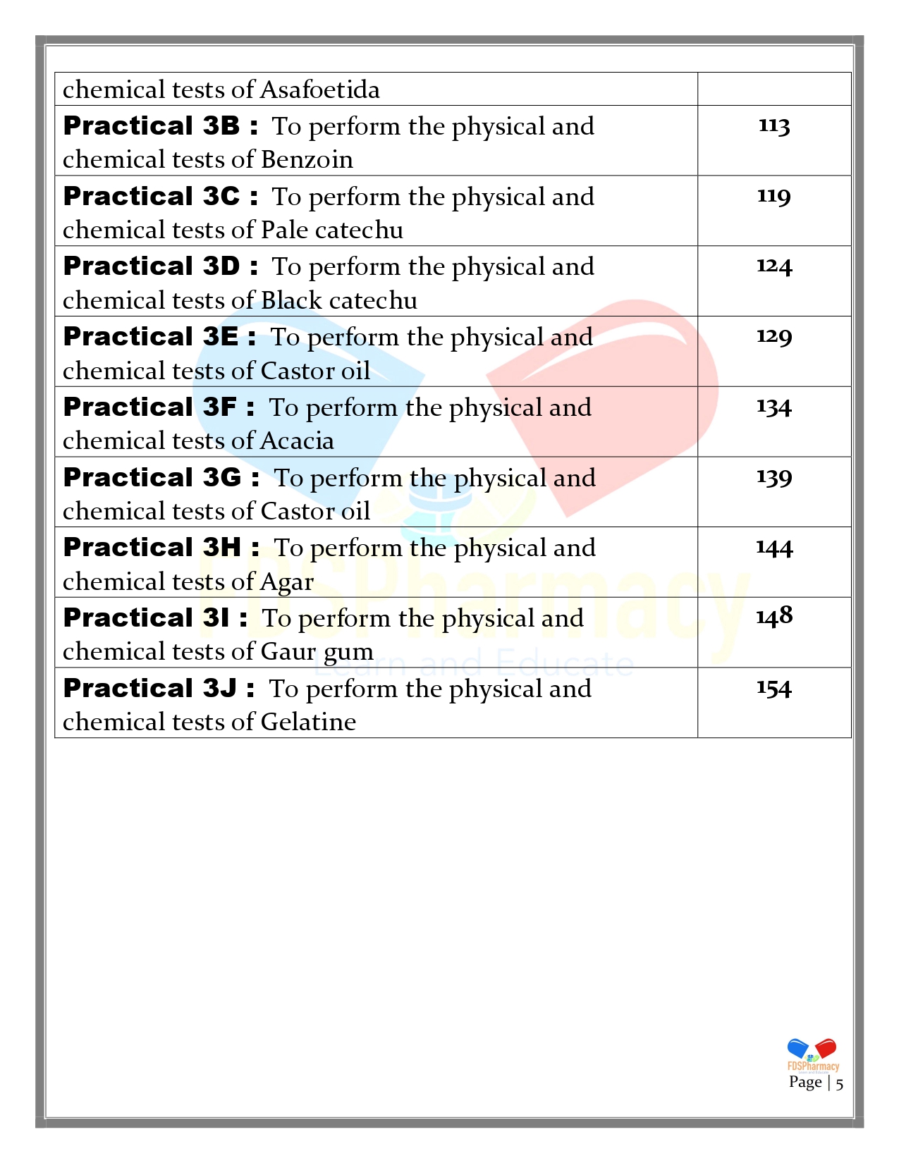 Practical 3F : To perform the physical and chemical tests of Acacia
