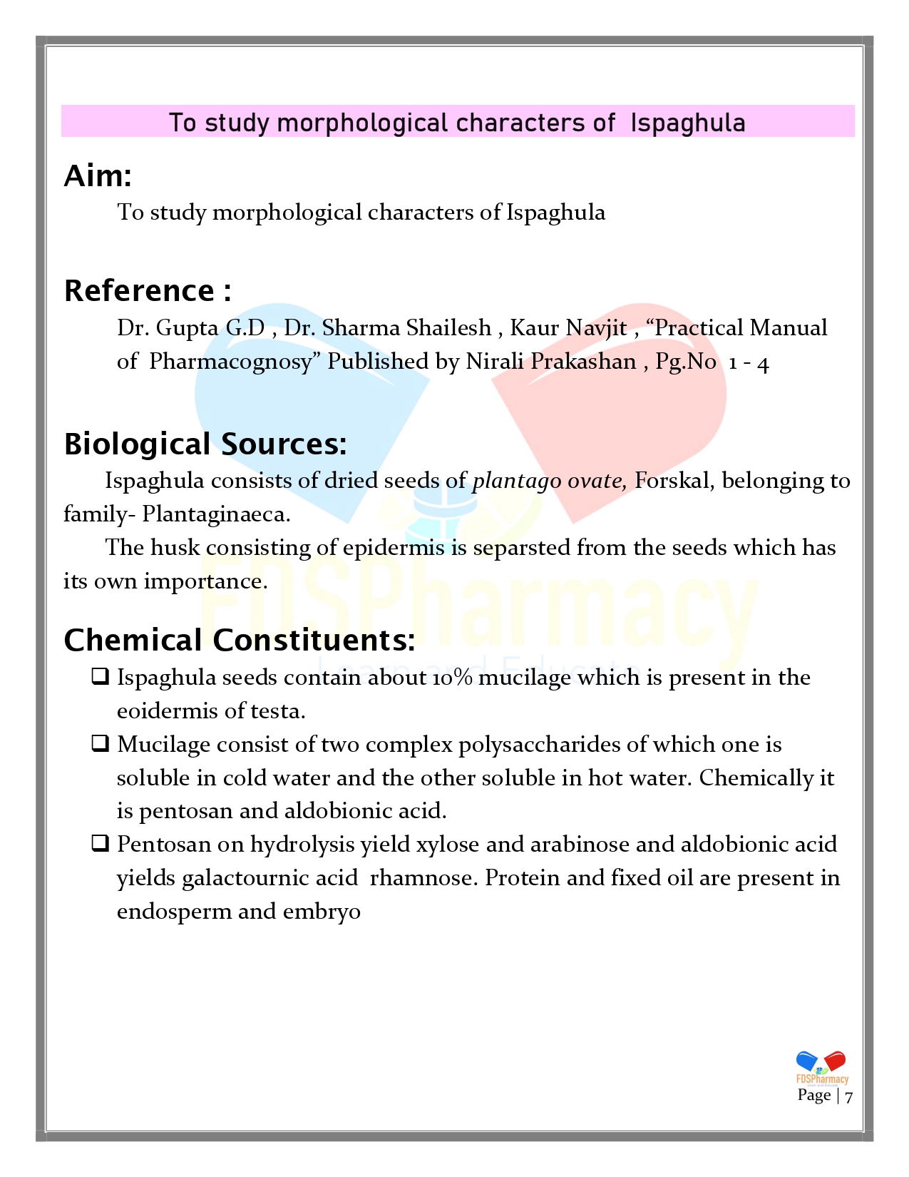 Practical 1A : To study morphological characters of Ispaghula