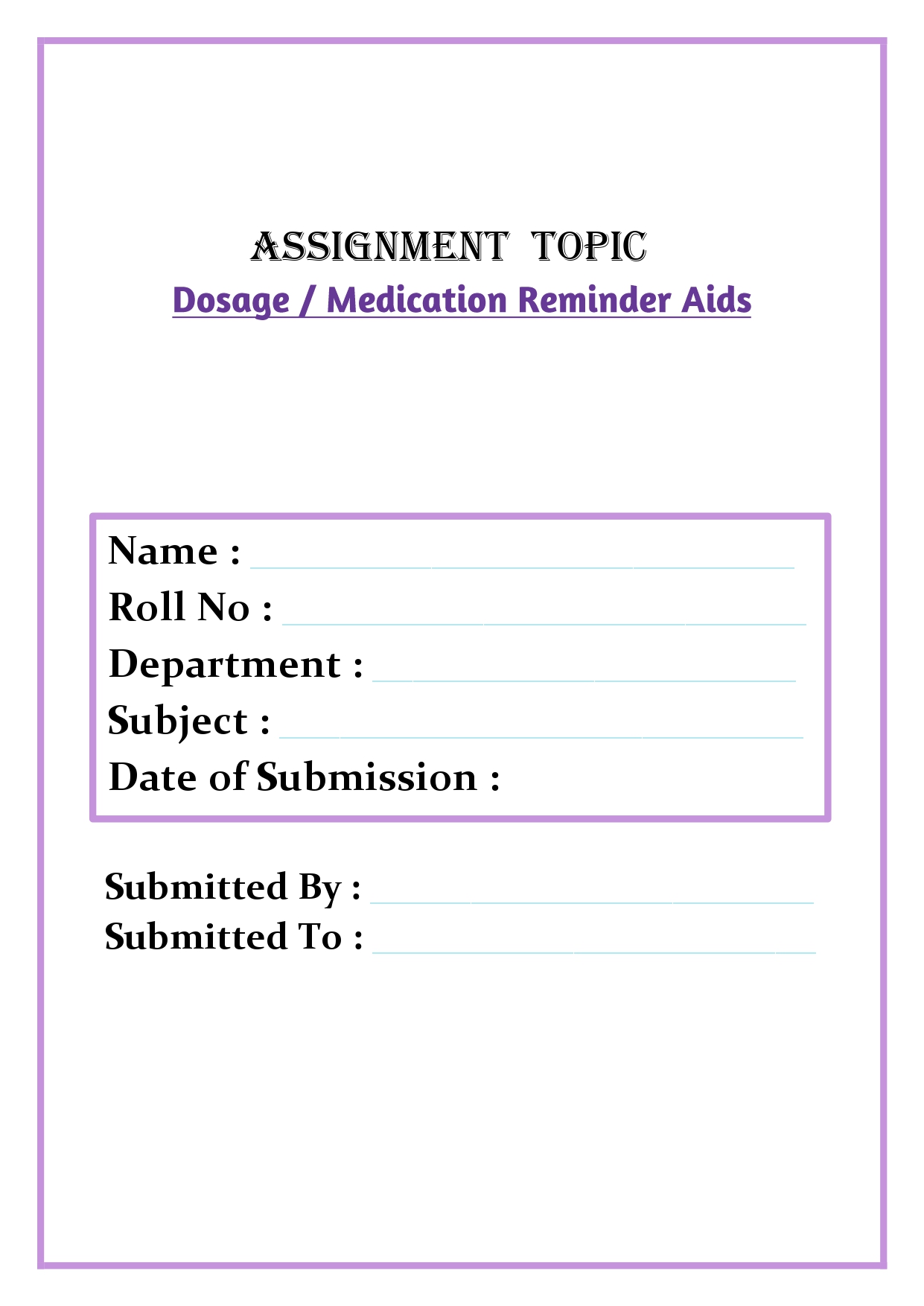 Be the first to review “Dosage / Medication Reminder Aids Assignment”