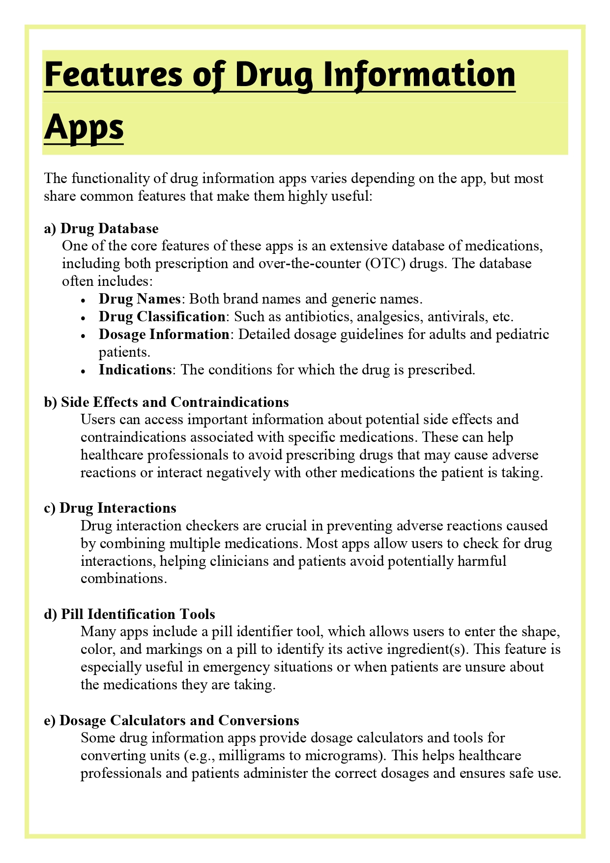 ✔ Features of Drug Information Apps