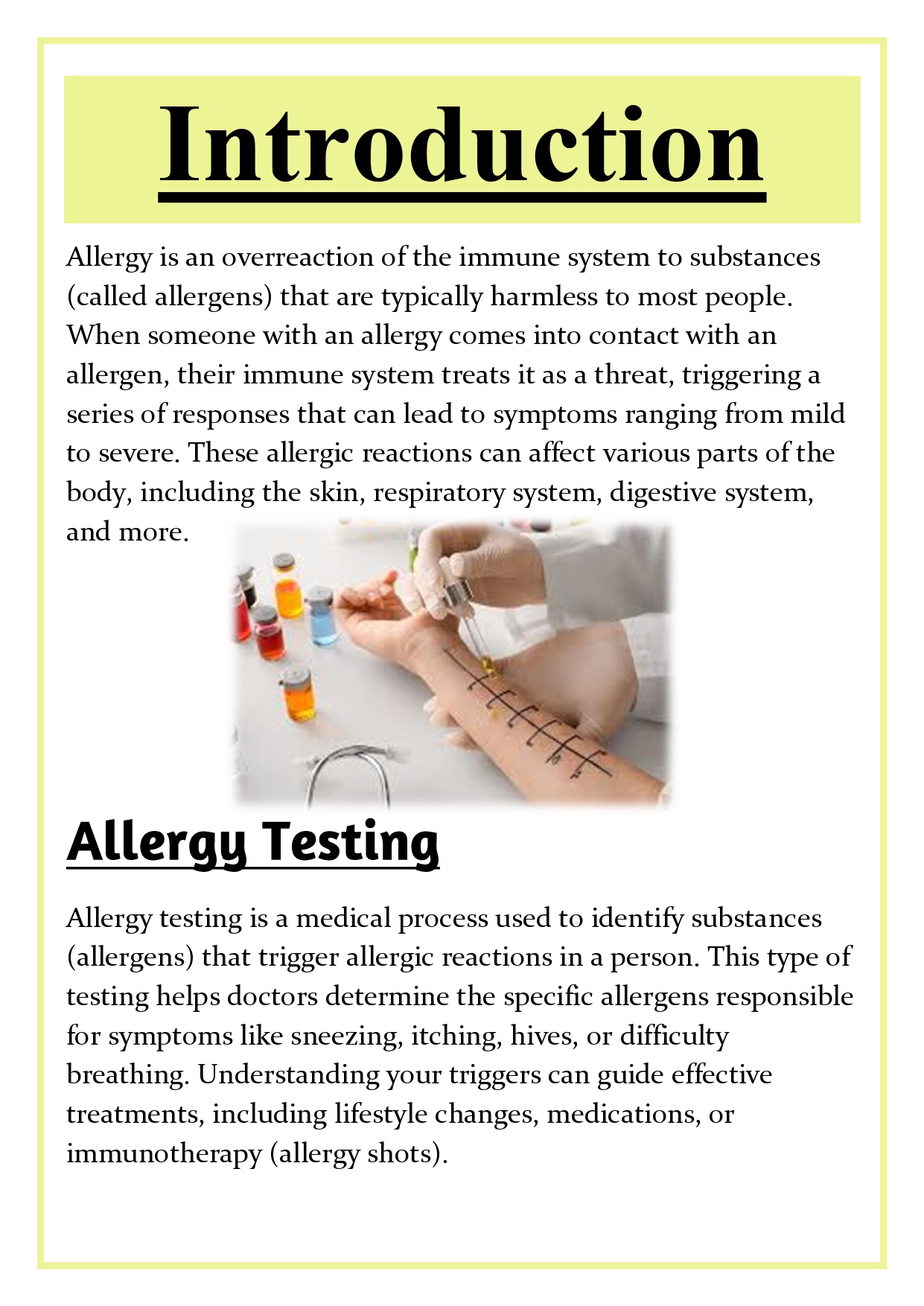 Topic : Introduction to Allergy Testing