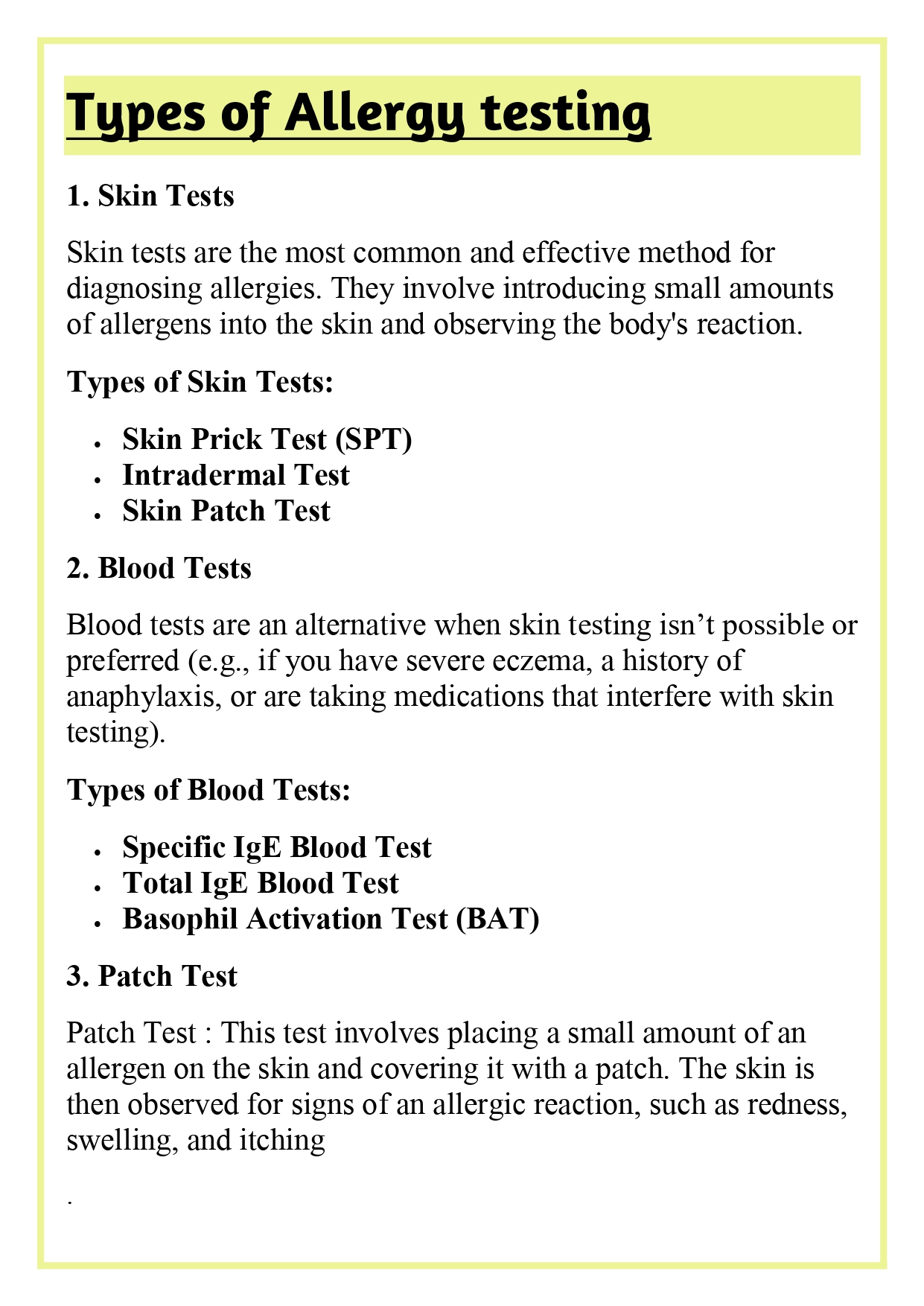 ✔ Types of Allergy testing