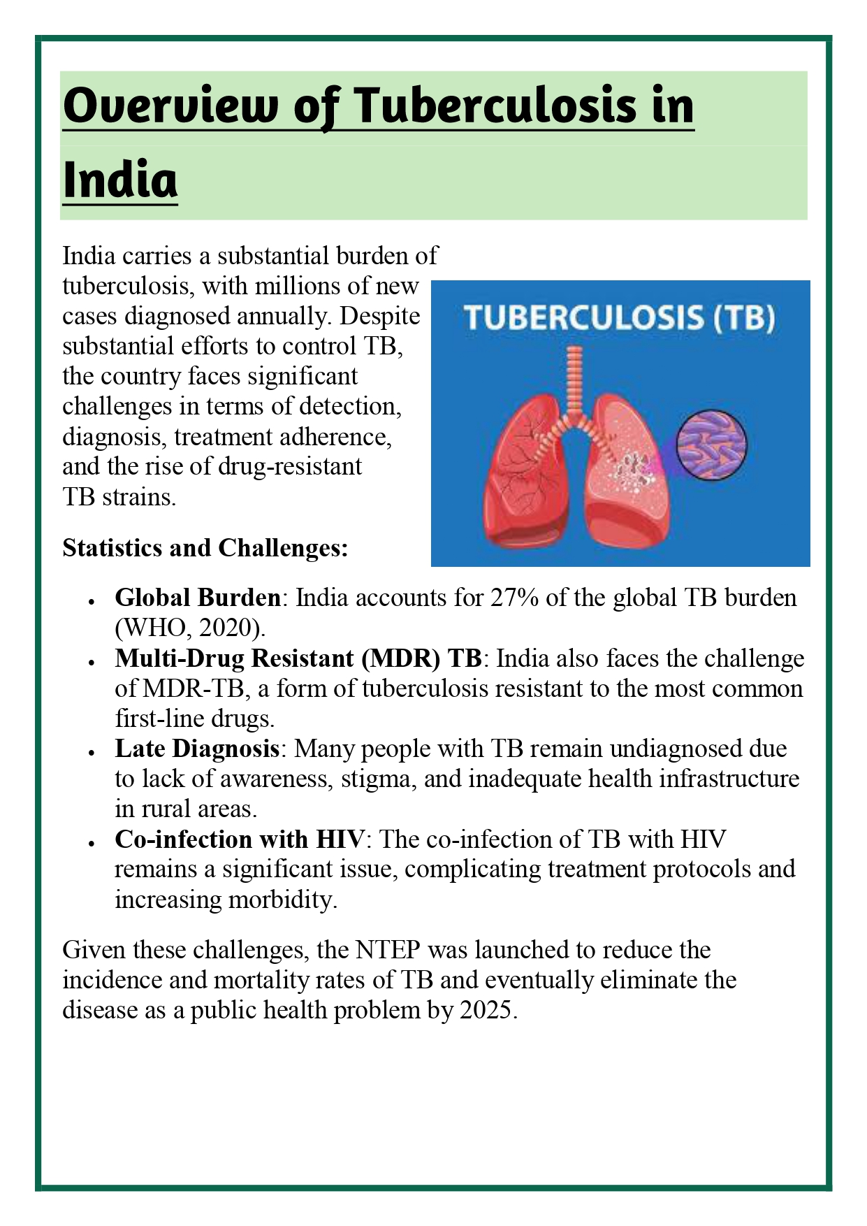 ✔ Overview of Tuberculosis in India
